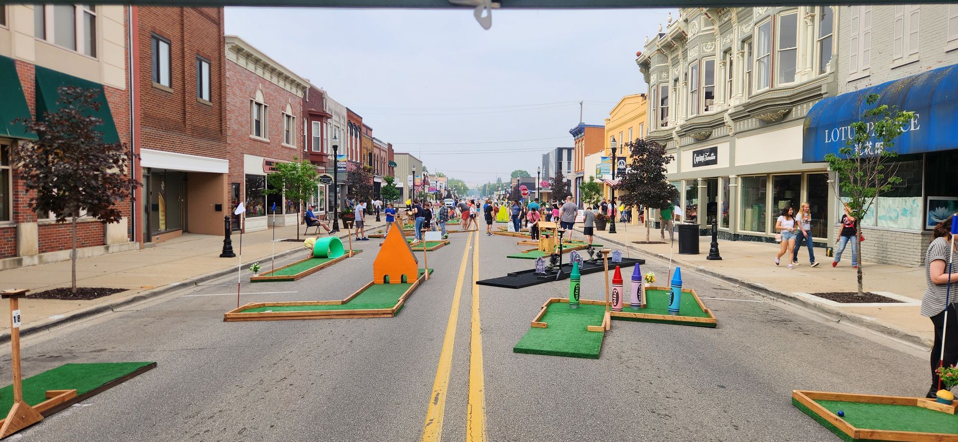 Welcome to the Putt‑2‑Go event gallery. Here, you’ll find photos of our portable 9-hole and 18-hole mini golf courses in action—set up at homes, offices, community venues, city festivals, schools, and corporate events across Michigan.